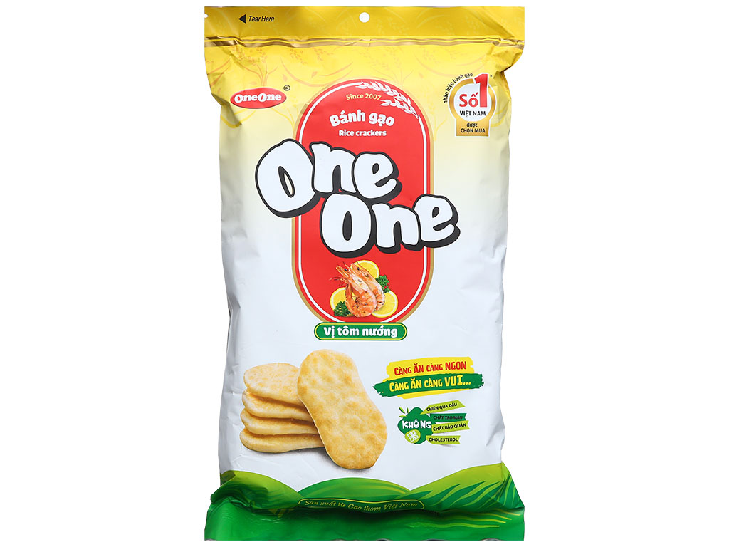 Thành phần: Gạo thơm (63%), đường tinh luyện, dầu thực vật, tinh bột biến tính, glucose, muối tinh, gia vị tôm(1,2%).