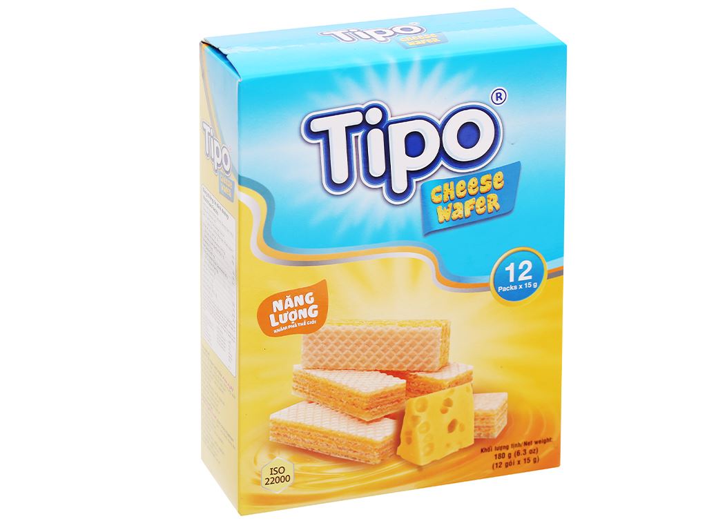 Thành phần: Bột mì, shortening, đường, bột whey, bột phô mai (5.5%), maltodextrin,chất xơ từ lúa mì, sữa bột, dầu olein cọ tinh luyện, chất nhũ hóa, muối, đạm đậu nành phân lập, chất tạo xốp, hương liệu tổng hợp, chất tạo màu tổng hợp, chế phẩm enzyme, chất xử lí bột, chất chống đông vón,…