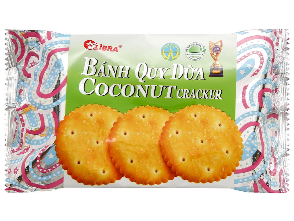 Thành phần: Bột mì, bơ, dầu thực vật, đường, siro glucose, muối, chất tạo xốp, chất nhũ hóa, chất điều chỉnh độ acid, hương thực phẩm sữa, dừa tổng hợp