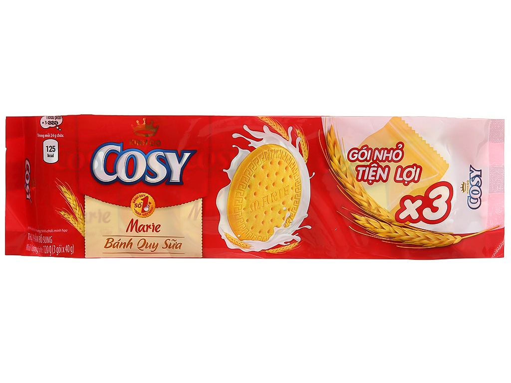 Thành phần: Bột mì, dầu cọ, đường, bột bắp, nước đường nghịch đảo, chất tạo xốp (500(ii), 503(ii)), mạch nha, bột sữa béo (0.6%), muối, canxi carbonat (170(i)), chất điều chỉnh độ acid (450(i), chất nhũ hoá (322(i)), hương thực phẩm tổng hợp (sữa, vani), DHA (docosa hexaenoic acid), chất xử lý bột (223, 1101(i)