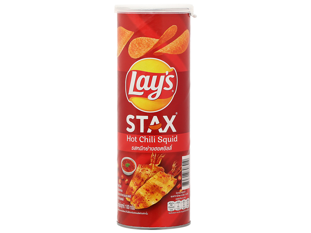 Thành phần: Khoai tây, dầu cám gạo, tinh bột mì, bột gia vị mực cay, hương tổng hợp, màu tự nhiên, bột đậu nành, bột cá, màu tổng hợp, chất điều vị, chất chống đông vón, chất làm dày, tinh bột biến tính, khí đóng gói E941
