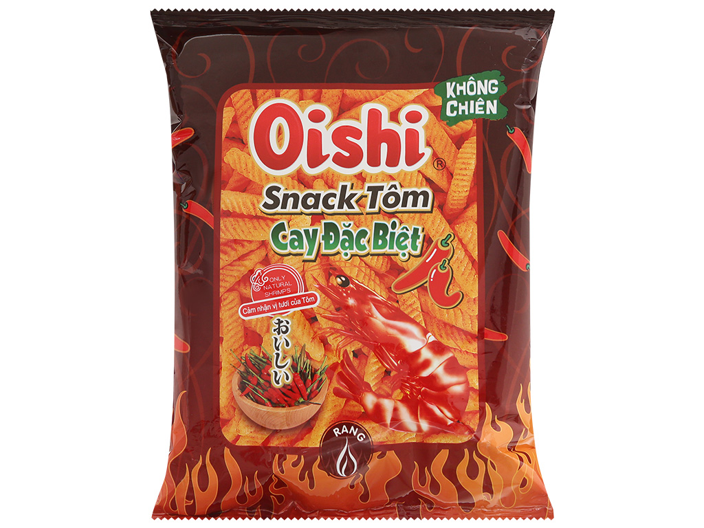 Công dụng: Snack tôm cay đặc biệt mang đến vị cay ngon thơm giòn trong từng chiếc bánh, rất ngon và thú vị khi ăn vặt cùng bạn bè và người thân. Không những thế, snack còn giúp cải thiện tâm trạng, giảm stress hiệu quả đồng thời cung cấp năng lượng cho cơ thể. Được làm từ những thành phần an toàn, snack Oishi vô cùng đảm bảo cho sức khỏe của bạn.